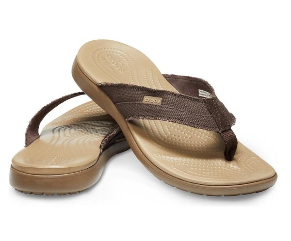 There’s a definite coastal Sunday drive kind of vibe to these Santa Cruz flips, which feature frayed canvas straps that share the same DNA as Crocs’ Santa Cruz loafers, including a wider, more generous fit. They make for a great everyday flip that can hang at the pool or the beach but also won’t look out of place at happy hour or any casual weekend outing.