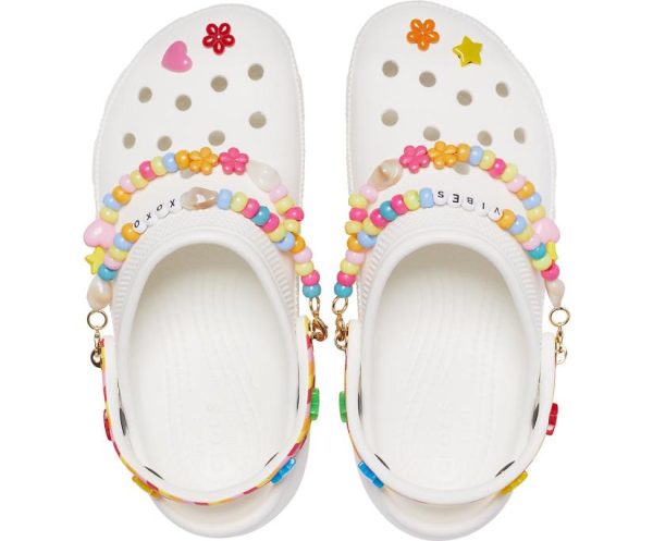 We created a style-relevant version of our Classic icon for her. Introducing the Classic Platform, featuring a heightened, contoured outsole that supports the upper you love with a slimmer, sleeker look — but there’s more. This special festival version features a rainbow printed backstrap, friendship bracelet embellishments, and removable Jibbitz™ charms. When you’re in the mood for a little extra boost, style it up with the Classic Platform.