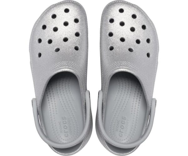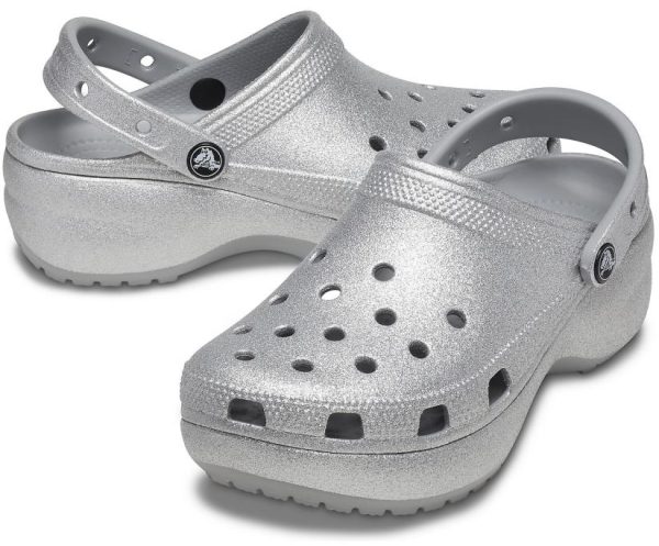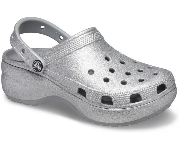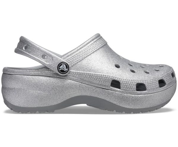 Women Classic Platform Glitter Clog Silver | Crocs Clogs