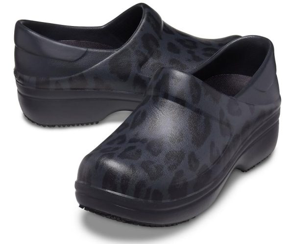 Women Neria Pro II Graphic Clog Black / Leopard | Crocs Clogs